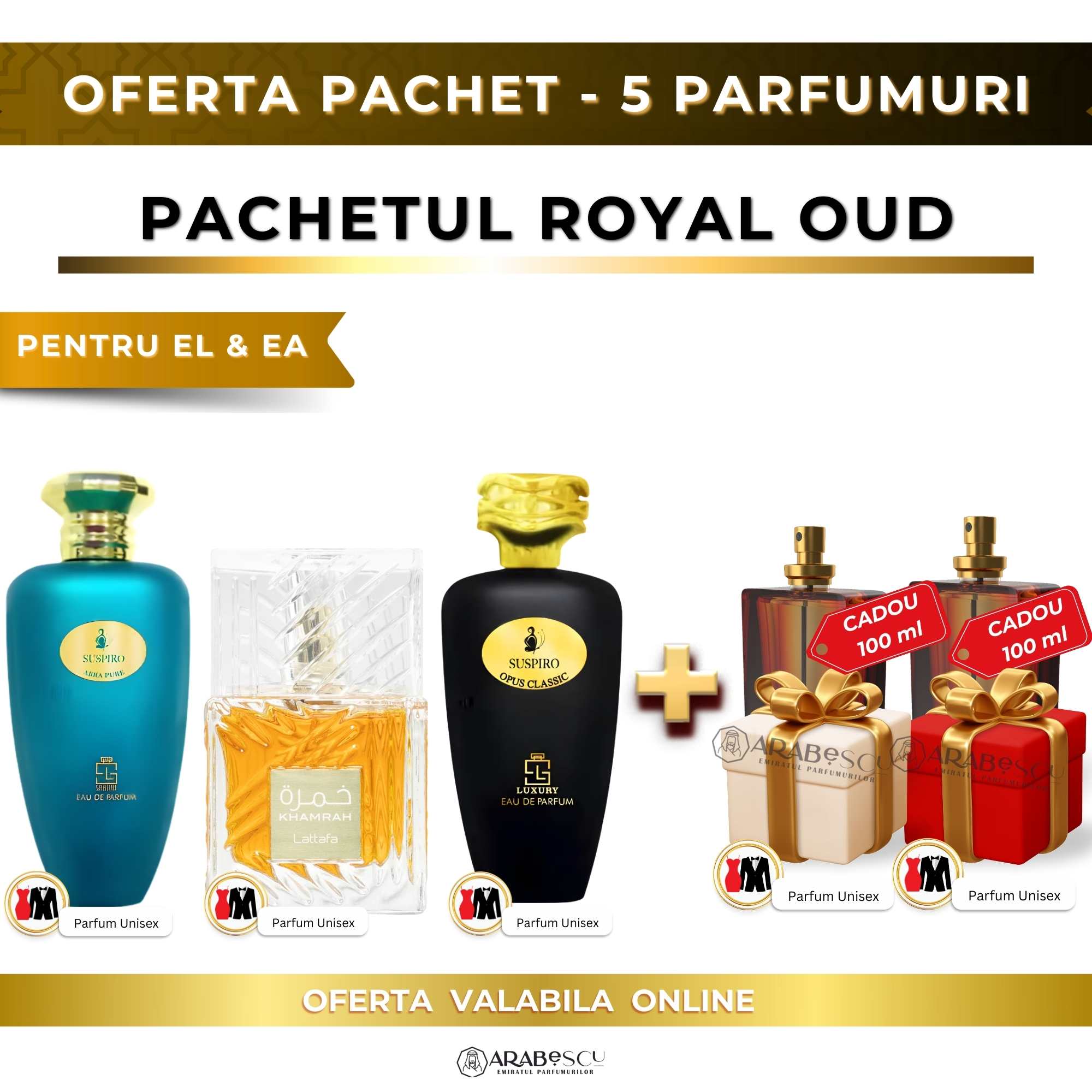 Suspiro Abra Pure + Khamrah + Suspiro Opus Classic + 2x Parfumuri Cadou
